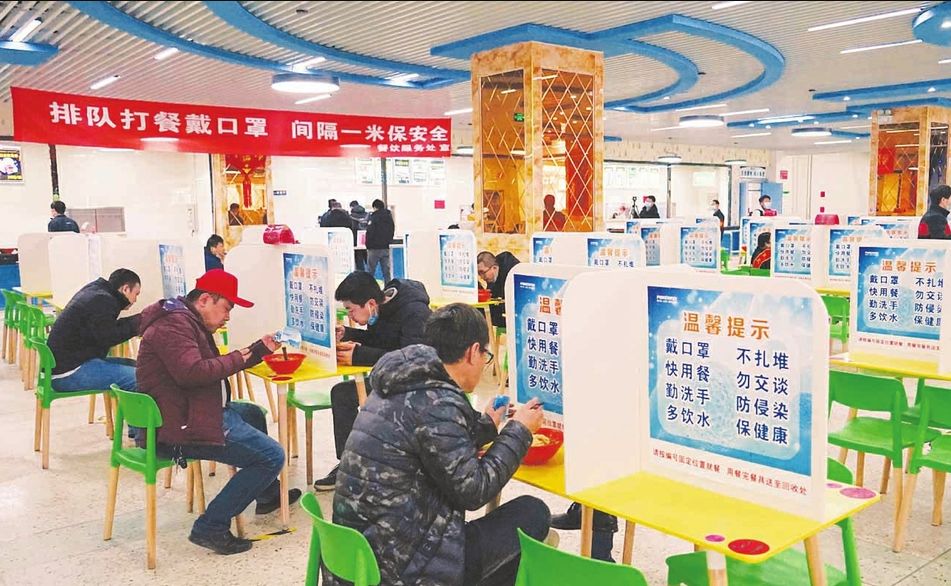 就餐实行错峰制,定点定位,单人隔板。山西日报通讯员摄