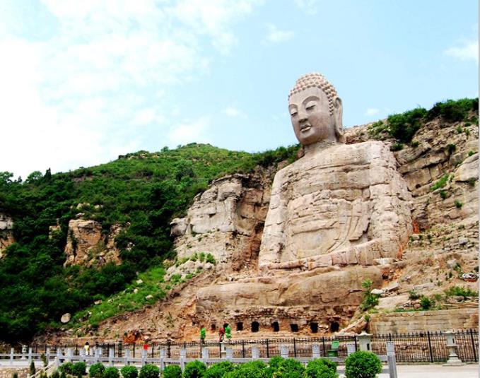 蒙山大佛,又名西山大佛,位于山西省太原市晋源区金胜乡寺底村西北。据史籍记载,这尊大佛是北齐文宣帝高洋天保二年(551)始凿。